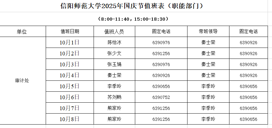 bevictor伟德官网2025年国庆节值班表