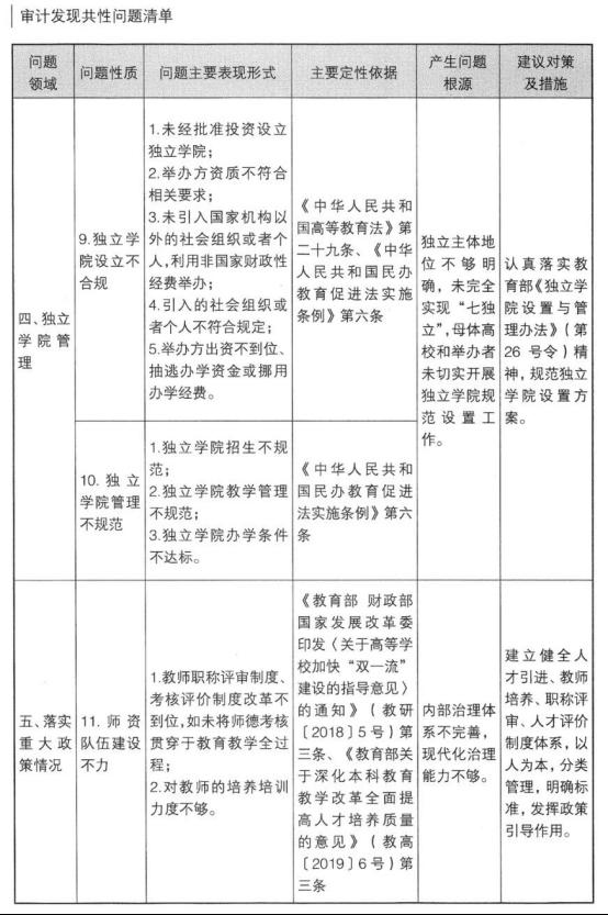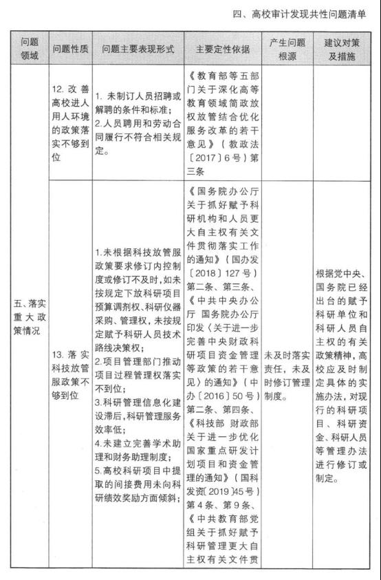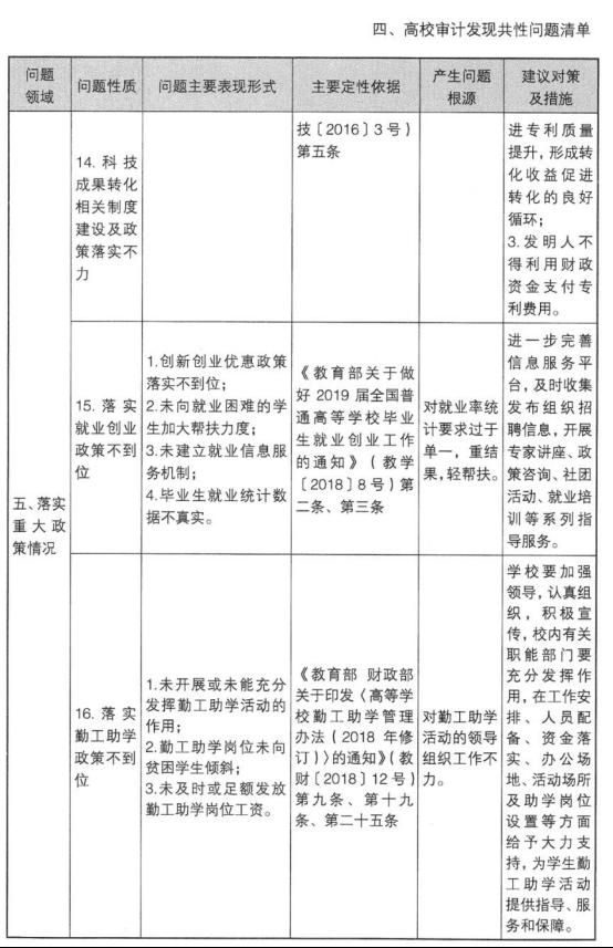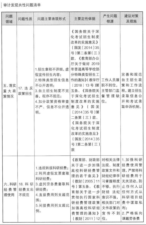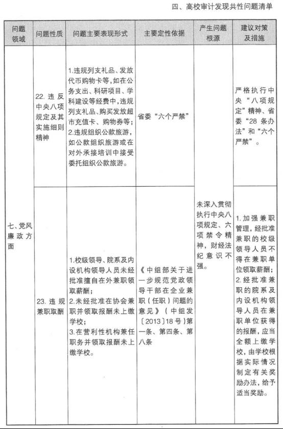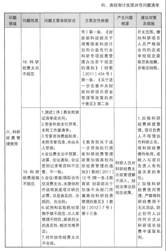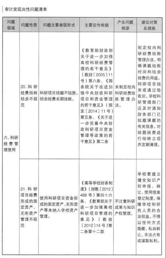 高校审计发现共性问题清单